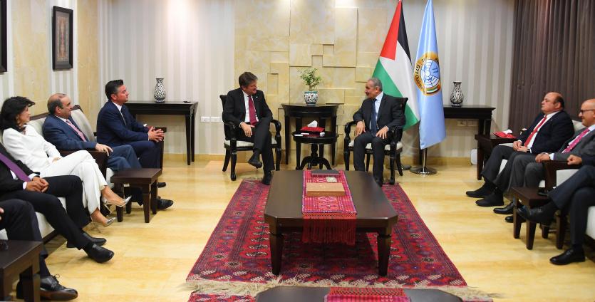 التقى رئيس الوزراء د. محمد اشتية، اليوم الأحد في مكتبه برام الله، رئيس مؤسسة YPO العالمية باسكال غيركن، بحضور أعضاء المؤسسة لفرع فلسطين.