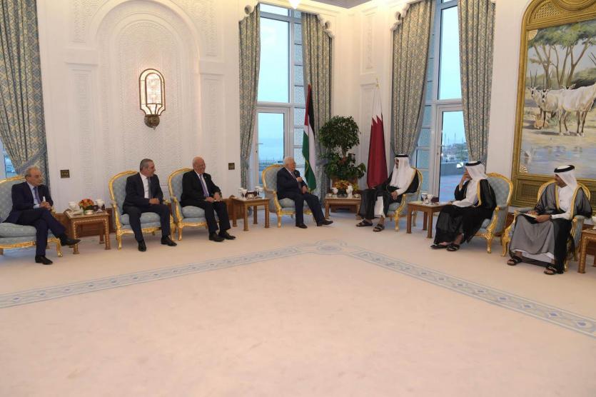 التقى رئيس دولـة فلسـطين محمود عباس، في العاصمة القطرية الدوحة، أمير دولة قطر الشيخ تميم بن حمد بن خليفة آل ثاني.