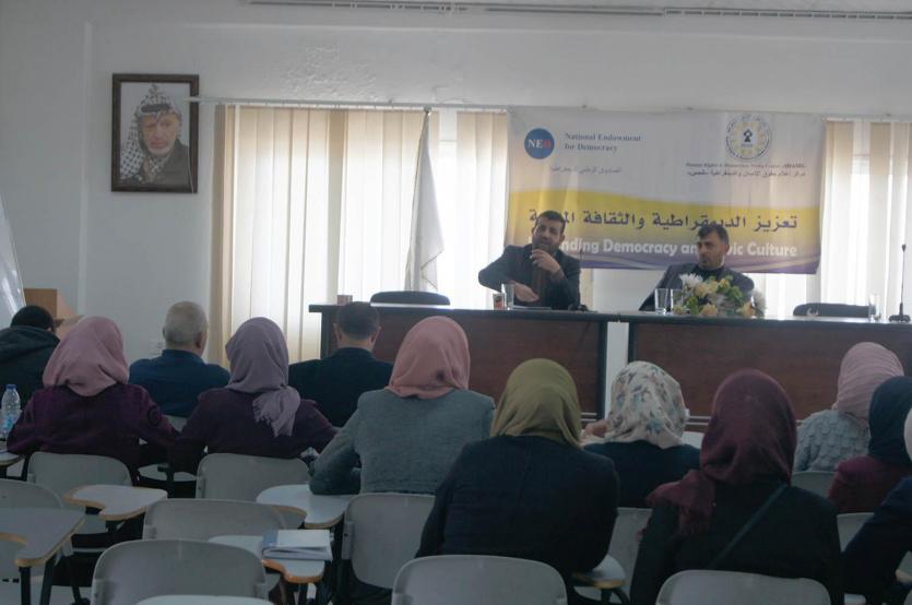 نظم مركز إعلام حقوق الإنسان والديمقراطية "شمس" ورشة عمل حول حقوق المرأة بين الشريعة الإسلامية والمواثيق الدولية، حضرها مجموعة من طلبة كلية الفقه والقانون في جامعة فلسطين الأهلية في بيت لحم، وتأتي هذه الورشة ضمن مشروع تعزيز الثقافة المدنية لطلبة الشريعة في محافظات الضفة الذي ينفذه المركز بالتعاون مع الصندوق الوطني للديمقراطية (NED).