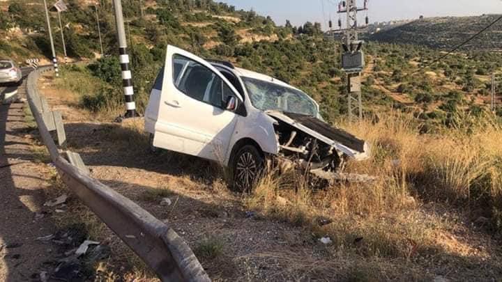 أصيب 13 مواطناً في حادث سير قرب قرية أم صفا شمال رام الله.