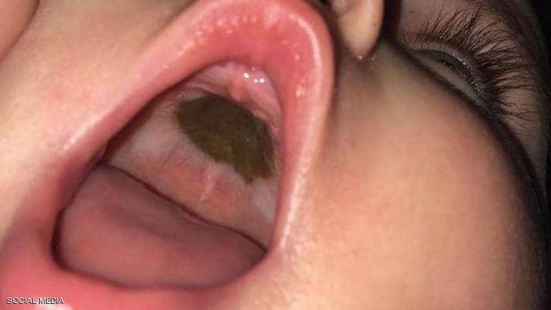 كشف "الحقيقة المضحكة" لبقعة سوداء داخل فم رضيعة