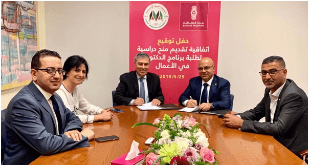 وقع بنك فلسطين والجامعة العربية الأميركية مذكرة تفاهم لدعم برنامج دكتوراه الأعمال كجزء من مساهمته في دعم التعليم العالي. وجرى توقيع مذكرة التفاهم في مقر المركز الرئيسي للإدارة العامة لبنك فلسطين في مدينة رام الله بحضور السيد رشدي الغلاييني المدير العام لبنك فلسطين والسيد فالح أبو عرة نائب رئيس الجامعة للشؤون المالية والإدارية، وعدد من رؤساء الدوائر والمسؤولين من الجانبين.