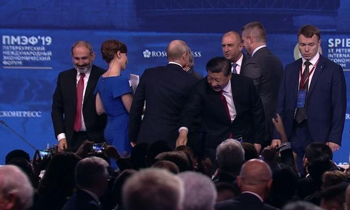 كاد أعضاء من الوفد الصيني أن يسقطوا رئيس بلادهم شي جين بينغ من على المنصة عقب الجلسة العامة لمنتدى بطرسبرغ الاقتصادي الدولي.