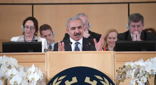 وتطلع اشتية إلى اليوم الذي تكون فيه فلسطين عضوا كامل العضوية في جميع المنابر والمؤسسات والمنصات الدولية بما فيها منظمة العمل الدولية.