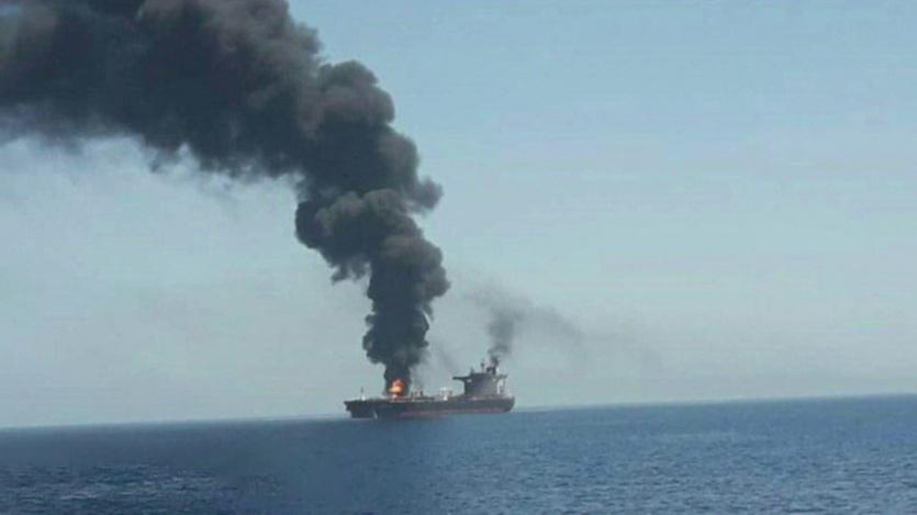 ونقلت وكالة "رويترز" عن صحيفة "تريد ويندز" المعنية بالشحن أن طوربيدا أصاب ناقلة نفط مملوكة لشركة "فرونت لاين" النرويجية، وفي وقت لاحق قالت الشركة إن النيران اشتعلت في الناقلة.