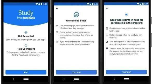 أطلقت شبكة فيس بوك تطبيقها الجديد "ستدي Study" المخصص للأغراض البحثية، الذي يجمع بيانات المستخدمين الخاصة بتطبيقات الهواتف الذكية، والميزات التي يستخدمونها داخلها، والوقت الذي يقضونه فيها، مقابل أجر مالي.