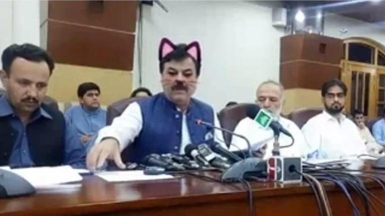 فعّل أحد أفراد فريق وزير باكستاني محلي خاصية فلتر القطة أثناء بث مباشر له على موقع "فيسبوك" خلال مؤتمر صحفي، ليظهر الوزير بأذني وشارب قطة، ما أثار موجة من السخرية على الإنترنت.