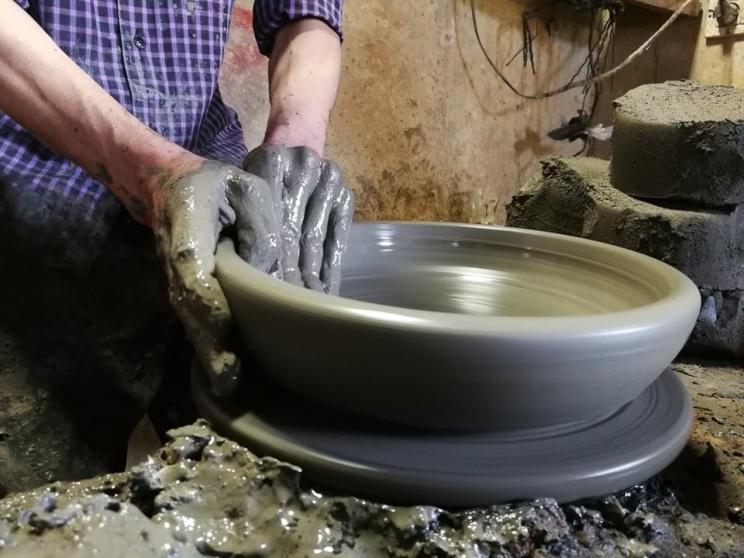 بينما كان الطين يتداخل بين أصابع يدي صانعه راتب الفاخوري، أصابعه التي خلقت من صلصال يشبه الفخار الذي يشكّل به أوانِ فخارية متعددة الأشكال لأغراض مختلفة، قال "الفخار حياتي، لا أستطيع تركه، فإذا بقيت في المنزل سأمرض، وحبي للفخار يحمل سرًا إلهيًا".