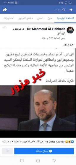 نفى قاضي القضاة الدكتور محمود الهباش ما تم تناقله عبر بعض المواقع الاعلامية ومواقع التواصل الاجتماعي من تصريحات له حول تبرع النساء للحكومة بالأموال.