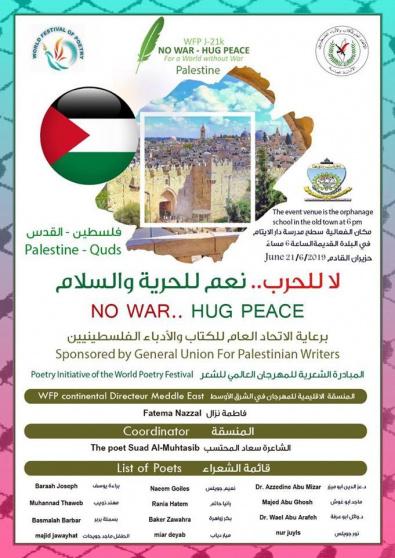 قالت المنسقة الإقليمية للمهرجان العالمي للشعر في الشرق الأوسط فاطمة نزال، ان هذه المبادرة عالمية يقوم عليها مهرجان الشعر العالمي وتنظم من 3 إلى 4 مرات في العام تحت عنوان أو قضية إنسانية مختلفة.