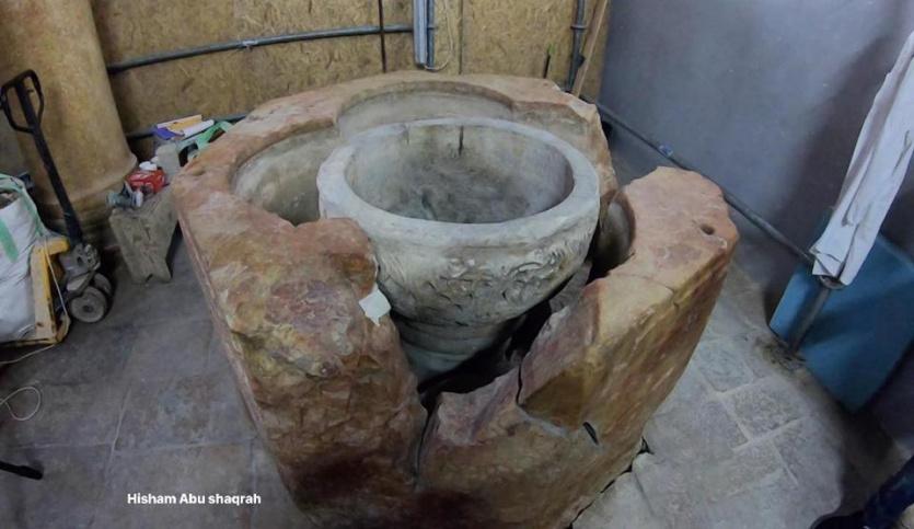 اكتشاف جرن المعمودية خلال أعمال ترميم كنيسة المهد
