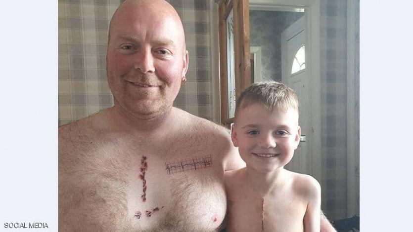 وبحسب موقع "فوكس نيوز"، فإن الأب مارتن واتس نقش وشما على صدره بطول 9 سنتيمترات، يشبه علامات الغرز التي تركتها العملية الجراحية في صدر ابنه الصغير جو، الذي يبلغ من العمر 6 أعوام.
