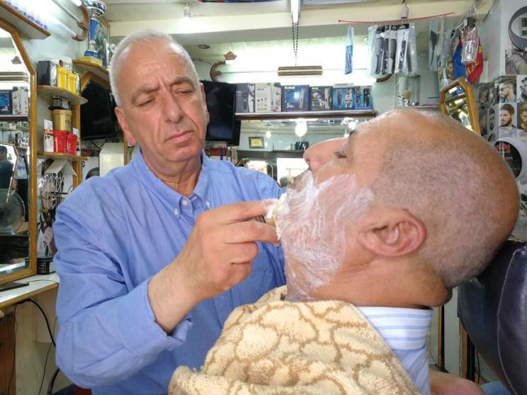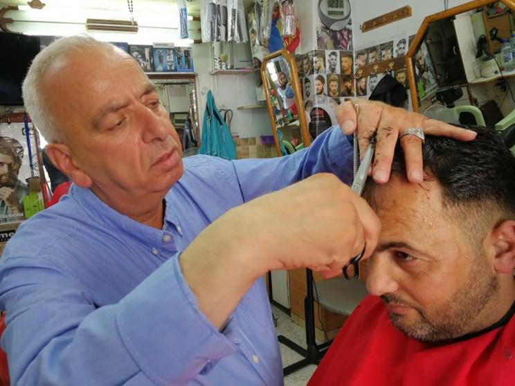 الحلّاق جهاد، 60 عامًا، يعمل في الحلاقة منذ 45 عامًا في صالون تجاوز عمره سبع عقود، يعتبر من أقدم الحلاقين في الخليل، "عندي صالونين للتدريب، رجالي وستاتي، وأنا نقيب الحلاقين منذ 25 عاما، من نقابي لرئيس صندوق لأمين صندوق لرئيس نقابة".