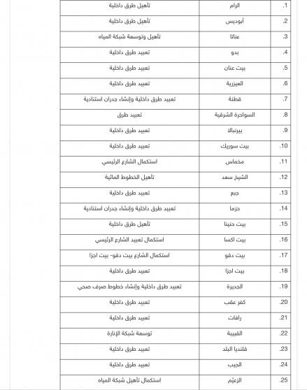 أعلن مجلس الوزراء، اليوم الثلاثاء، اعتماد عدد من المشاريع التطويرية في قطاعي التعليم والبنية التحتية في محافظة القدس، بتمويل من البنك الإسلامي للتنمية/ صندوق الأقصى والصناديق العربية والإسلامية.