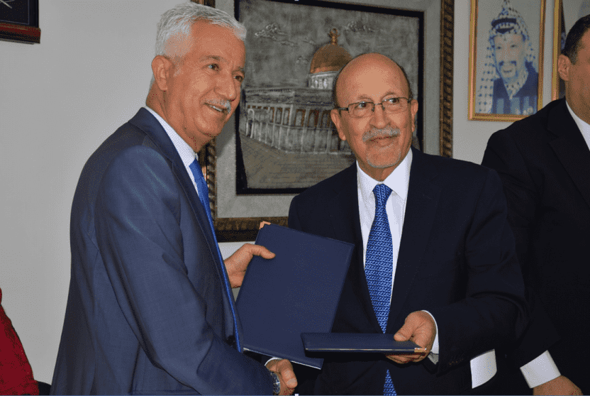 ووقع مذكرة التفاهم الدكتور نبيل قسيس رئيس مجلس إدارة هيئة سوق رأس المال وبسام ولويل رئيس مجلس إدارة مؤسسة إنجاز فلسطين وبحضور كل من السادة: براق النابلسي مدير عام هيئة سوق رأس المال، وورانيا قطينة مدير عام مؤسسة إنجاز فلسطين وعدد من المدراء العامون ومدراء الدوائر في هيئة سوق رأس المال ومؤسسة إنجاز.