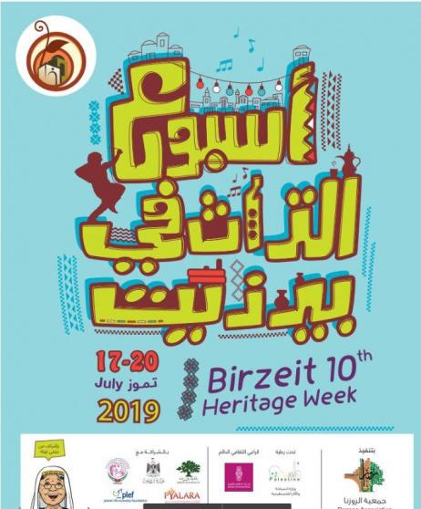 ينطلق قريبا، أسبوع التراث في بيرزيت في احتفال متجدد في عامه العاشر، ويمتد من 17-21 \7\2019 و يتضمن فعاليات فنية، عرس فلسطيني، عروض غنائية، معرض لمنتجات فلسطينية .
