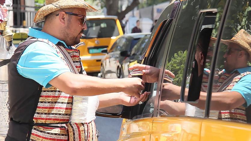 راضي معبد، صاحب البشرة السمراء التي خلّفتها أشعة الشمس عندما تعانقت مع حبات عرقه بينما يبيع العصير في حضرتها. " لما ألبس البدلة الشامية يعطيني الله عزيمة عظيمة للعمل، فأكبر متعة عندي عندما يكون الجميع في الظل وأنا أمشي بالشارع تحت أشعة الشمس الحارقة، فأنا لا أحب مهنتي فقط، أنا أعشقها، وأموت فيها وبتعبها".