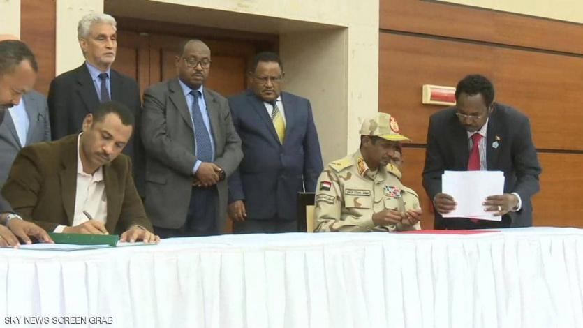 ويهدف الاتفاق إلى تمهيد الطريق أمام انتقال سياسي في السودان بعدما أطاح القادة العسكريون بالرئيس السابق عمر البشير في نيسان في أعقاب احتجاجات على حكمه استمرت لأسابيع.
