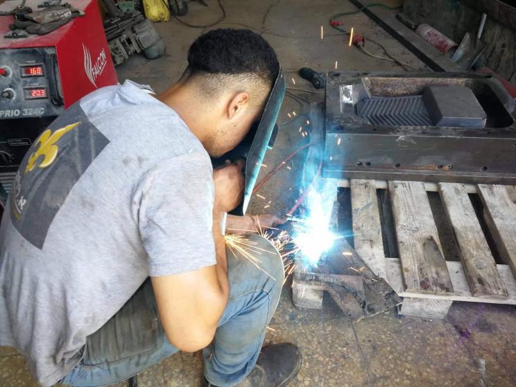 في مساحة تضجّ بالمعدات، ولا شيء أكثر من الحديد فيها، آلات ضخمة، مطارق ومفاتيح بأنواعها، إلى جانب الأوكسجين واللحام، يتمحور عالم الشاب العشريني الخليلي بهاء النتشة، داخل ورشة الخراطة التي أسسها وشريكه، التي يعتبرها مصنع أفكاره وجنونه.