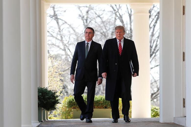 ويعمل ترامب على بناء علاقات أوثق مع الرئيس البرازيلي جايير بولسونارو الذي تولى السلطة في يناير الماضي ويطلق عليه أحيانا لقب "ترامب الاستوائي".