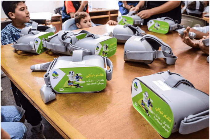 "فعالية رائعة وجديدة" هذا ما بدأته الأخصائية النفسية رشا فخيدة مسؤولة المخيم الصيفي في قلنديا عند وصفها لفعالية الواقع الافتراضي واستخدام نظارات الـ VR.