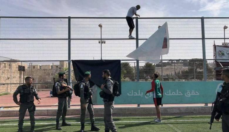 الإحتلال يزيل لافتات العائلات المقدسية في ملعب برج اللقلق