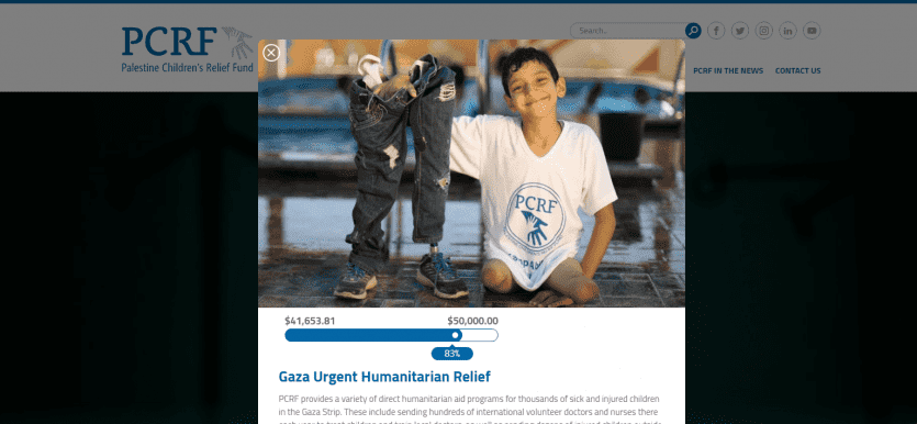 يذكر أن جمعية إغاثة أطفال فلسطين هي مؤسسة غير ربحية، تأسست عام 1991 في الولايات المتحدة الأمريكية، بهدف معالجة الأزمات الطبية والإنسانية التي يواجهها الأطفال الفلسطينيين في الشرق الأوسط، تعمل الجمعية بشكل رئيسي على توفير الخدمات الطبية الجراحية المجانية و الإنسانية والدعم النفسي للأطفال في فلسطين والشرق الأوسط.