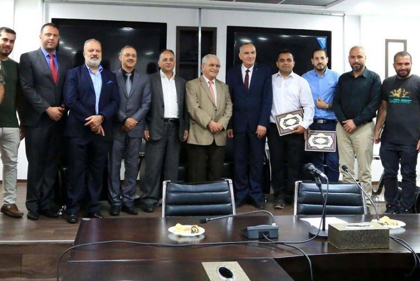 حضر اللقاء من الوزارة: وكيل الوزارة م. جميل زغارنة، ود. فارس المحمود، وعدد من طاقم العاملين على إنجاح هذه المسابقة.