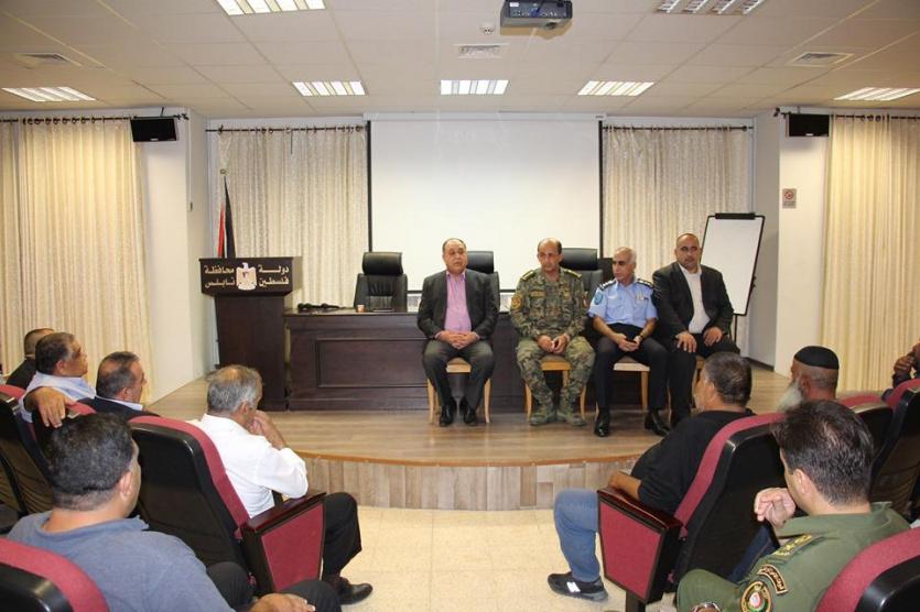 وقد حضر الإجتماع العميد محمد سلامة قائد الأمن الوطني في نابلس ومدير شرطة نابلس العقيد حقوقي يوسف نصر الله ومدير جهاز الاستخبارات في نابلس أحمد عثمان أبو شرار ومدير عام الشؤون الادارية صالح أسد، ومسؤول ملف الجدار والاستيطان في محافظة نابلس غسان دغلس.