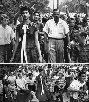 أتت هذه الصورة بالترتيب الثالث عشر عالمياً ، و هي لأول فتاة سوداء تُقبل بمدرسة ثانوية للبيض و كان ذلك في 4 سبتمبر عام 1957 .