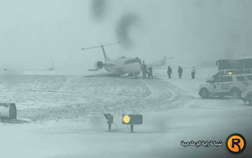 شاهد.. طائرة تنزلق على مدرج ثلجي في شيكاغو