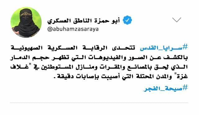 ابو حمزة: نتحدى الاحتلال بنشر صور المواقع التي إستهدفناها