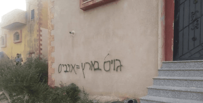 اعطاب اطارات وخط شعارات عنصرية غرب سلفيت