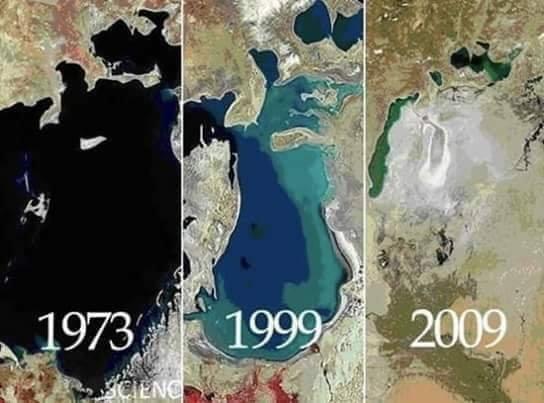 يعد جفاف بحر آرال في آسيا الوسطى يعد من أكبر الكوارث التي تسبب بها الإنسان.