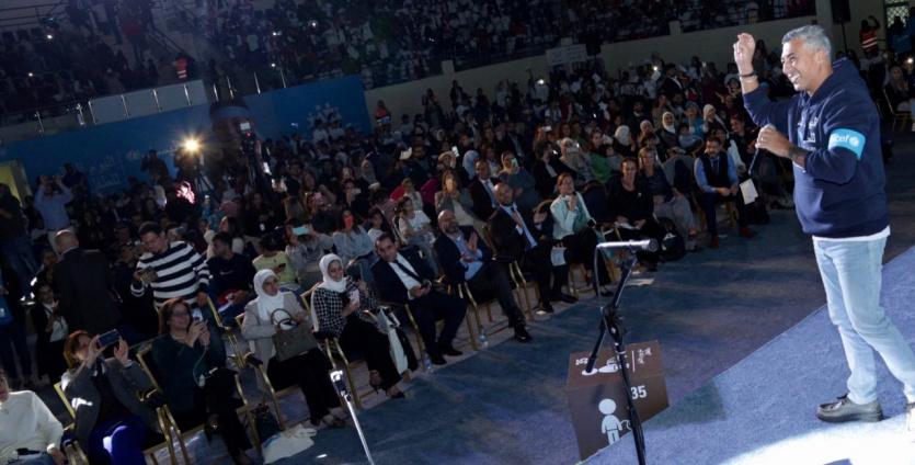 أجواء مشتعلة بإمتياز شهدها حفل صوت الأردن الفنان عمر العبداللات في الإحتفال الكبير الذي أقامته منظمة الأمم المتحدة لليونيسف بمناسبة اليوم العالمي للطفل وسط حضور كبير حضره نحو 3 آلاف شخص أستقبلوا العبداللات بالهتاف وموجات حارة من التصفيق فور صعوده إلى خشبة المسرح ، حيث قدم صوت الأردن باقة من أجمل أغانيه وأشهرها وردد معه الجمهور عن ظهر قلب كلمات أغنياته لينثر الفرح في كافة أرجاء المكان ، والجدير بالذكر أن مشاركة العبداللات في هذا الحفل جائت تبرعاً منه للأطفال بمناسبة يومهم العالمي ، وجاء إختيار منظمة الأمم المتحدة " اليونيسف " للفنان عمر العبداللات لإحياء هذا الحفل نظراً للجماهيرية الكبيرة التي يتمتع بها وتكريماً منهم على دوره الإنساني والمجتمعي الذي يقدمه العبداللات في مسيرته الفنية ووجّه الفنان عمر العبداللات رسالة للعالم بمناسبة اليوم العالمي للطفل أكد فيها حق الطفل في حياة كريمة وتمتعه بكافة حقوقه.