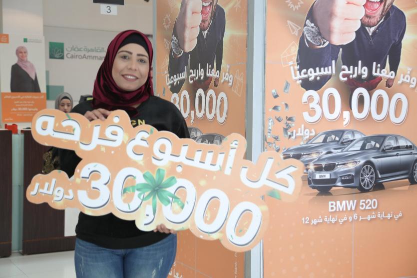 فازت المواطنة كوزين موسى رومه، المدخرة لدى بنك القاهرة عمان -فرع أريحا، بجائزة الأسبوع الثاني والثلاثين ضمن حملة البنك، على حسابات التوفير "كل أسبوع فرحة"، وقيمتها 30,000 دولار.