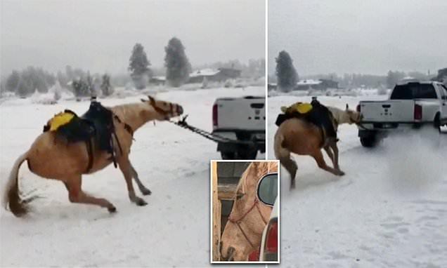 يواجه رجل وزوجته تهمة رسمية هي "القسوة على الحيوان"، بعد أن أظهرهما شريط مصور وهما يجران حصانا بقسوة على الجليد عقب ربطه إلى شاحنتهما، في ولاية كولورادو الأميركية.