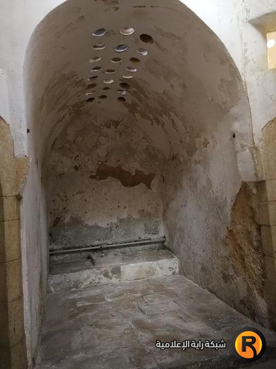 لماذا بدأنا من سقف الحمام؟ لأن الإحتلال يمنعنا من دخوله عبر بوابته الرئيسة على شارع الشهداء، فبعد السقف مباشرة، هناك بوابة خشبية تأخذ لممر ضيّق يكاد لا يتجاوز نصف المتر الواحد، ثم سلالم حجرية وبعدها ممرات أخرى صغيرة وصولًا لعمق الحمام.