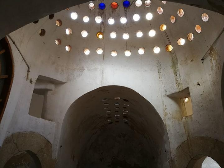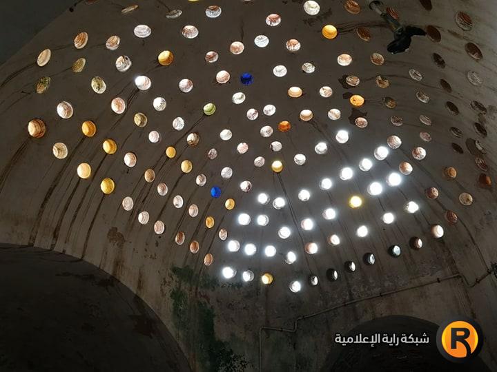 "الزجاج الموجود بالسقف يدخل إنارة للحماح ويحفظ الحرارة عن طريق الشمس، وهذه هندسة تركية، كما يقوم بإدخال قوس قزح للداخل، فتكون الألوان مندمجة داخل الحمام لإعطائك راحة نفسية داخله". قال سمير.