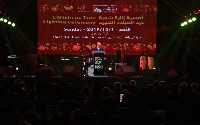 جاء ذلك خلال إضاءة شجرة الميلاد في مدينة رام الله، مساء اليوم الأحد، بحضور محافظ رام الله والبيرة ليلى غنام، ورئيس اللجنة الرئاسية العليا لمتابعة شؤون الكنائس رمزي خوري، وعدد من أعضاء اللجنة التنفيذية لمنظمة التحرير، والوزراء، ورجال دين مسلمين ومسيحيين، ورؤساء بلديات، وحشد غفير من المواطنين.