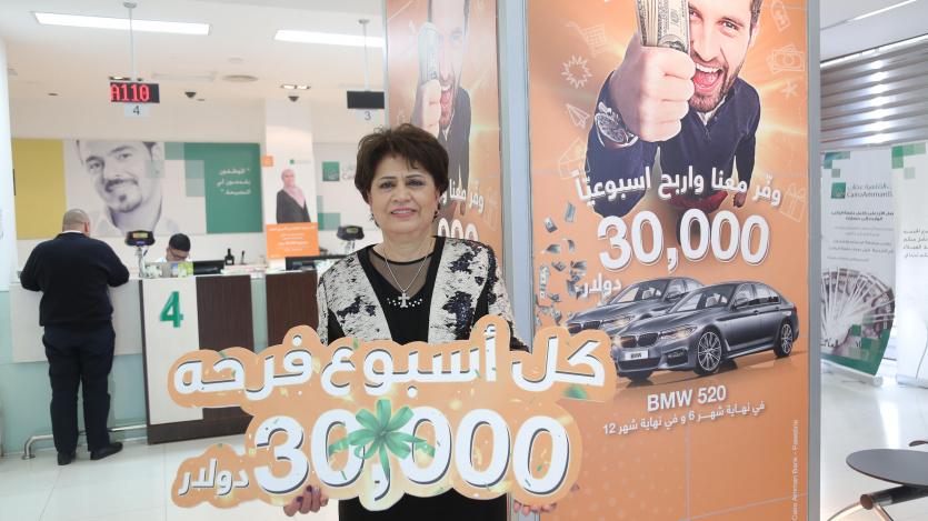 فازت المواطنة منى يوسف الياس فضايل، المدخرة لدى بنك القاهرة عمان -فرع الكلية الاهلية في رام الله، بجائزة الأسبوع الثالث والثلاثين ضمن حملة البنك، على حسابات التوفير "كل أسبوع فرحة"، وقيمتها 30,000 دولار.