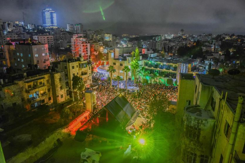 جانب من احتفالية إضاءة شجرة الميلاد في رام الله- تصوير عرين الريناوي