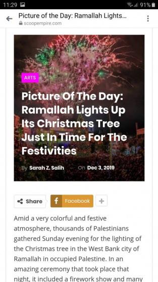 حققت صورة لاحتفالية إضاءة شجرة الميلاد في مدينة رام الله، انتشارا عالميا وتفاعلا على مواقع التواصل الاجتماعي.