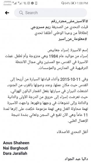 وأكد أبو اسنينة أنه راض عن الحملة والتحدي وما وصلت له، لكن الهدف الأساس هو ايصال صوت الاسرى للعالم، مشيرا الى أن وسم باللغة الانجليزية سيطلق قريباً.