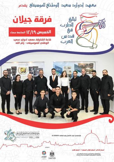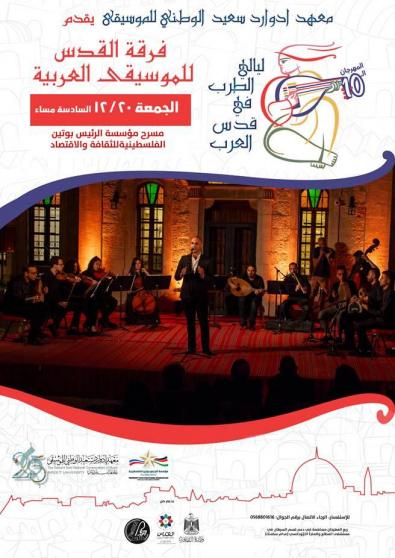 يختتم مهرجان ليالي الطرب في قدس العرب فعالياته في القدس ورام وييت لحم في 19 و20 كانون الأول 2019، والمنظم من قبل معهد ادوارد سعيد الوطني للموسيقى ضمن فعاليات القدس عاصمة الثقافة الاسلامية، حيث ستقدم فرقة القدس للموسيقى العربية عرضين موسيقيين، الأول في المعهد الوطني في القدس يوم الخميس القادم 19-12 والثاني في مدرسة تشايكوفسكي في بيت لحم يوم الجمعة القادم 20-12، أما فرقة جيلان الموسيقية ستقدم عرضا موسيقيا في المعهد الوطني للموسيقى في رام لله يوم الخميس 19-12، اضافة لعرض موسيقي لاوركسترا غزة للموسيقى الشرقية في غزة.