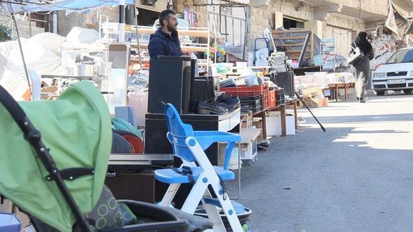 محمد أبو زعنونة يقول "كل شيء يخطر ببالك موجود بالسوق، فالثلاجة مثلًا سعرها ألفين ثلاثة، بالسوق تأخذها مائتين شيقل أو ثلاثمائة شيقل، واقبال الناس جيد".