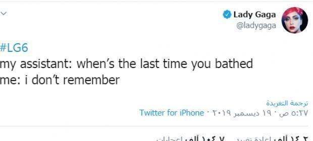 وجاءت هذه التغريدة تحت وسم "إل جي 6" في إشارة إلى ألبومها والذي يعني "ليدي غاغا 6".
