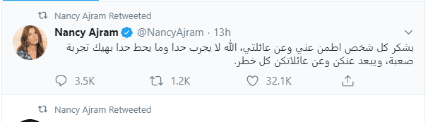 "من ينتقد ما فعله زوجي.. أطلب منه أن يضع نفسه بالموقف ذاته"، بهذه الكلمات بدأت الفنانة اللبنانية نانسي عجرم حديثها في أول تعليق لها بعد إطلاق سراح زوجها وخروجه من المستشفى إثر الحادثة التي كانت حديث وسائل الإعلام في الساعات الماضية.