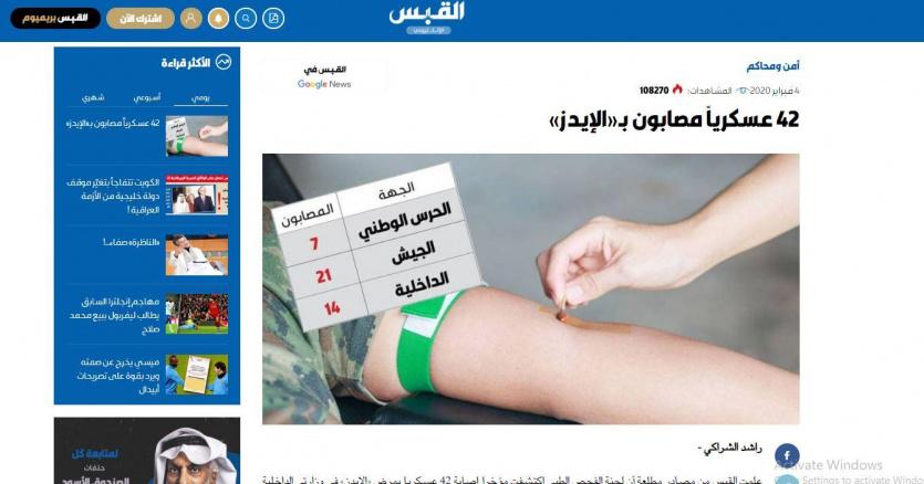 ووفقا للصحيفة الكويتية، فان لجنة الفحص الطبى اكتشفت مؤخرا إصابة 42 عسكريا بمرض «الإيدز» في وزارتي الداخلية والدفاع والحرس الوطني.