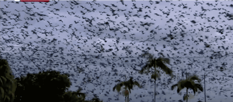 هذه الخفافيش اجتاحت في أسراب الحدائق العامة في البلدة حتى أن أغصان الأشجار تتحطم من ثقل الخفافيش الجاثمة عليها. وتعرف هذه الحيوانات أيضا باسم الثعالب الطائرة.